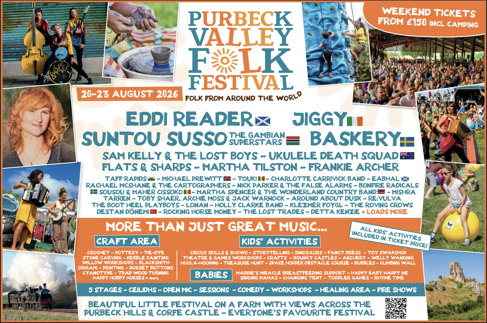 Eddi Reader – Jiggy – Suntou Susso & the Gambian Allstars – Baskery – Martha Tilston – Sam Kelly & the Lost Boys – Frankie Archer – Flats & Sharps – Ukulele Death Squad – Michael Prewitt – Bonfire Radicals – Mishra – Re:Vulva – The Roving Crows
